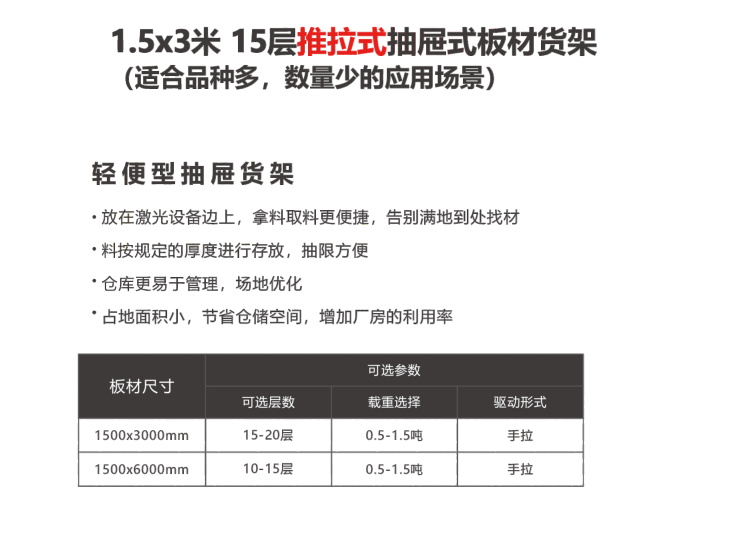 1.5x3米15层推拉式抽屉式板材货架-适合品种多,数量少的应用场景-